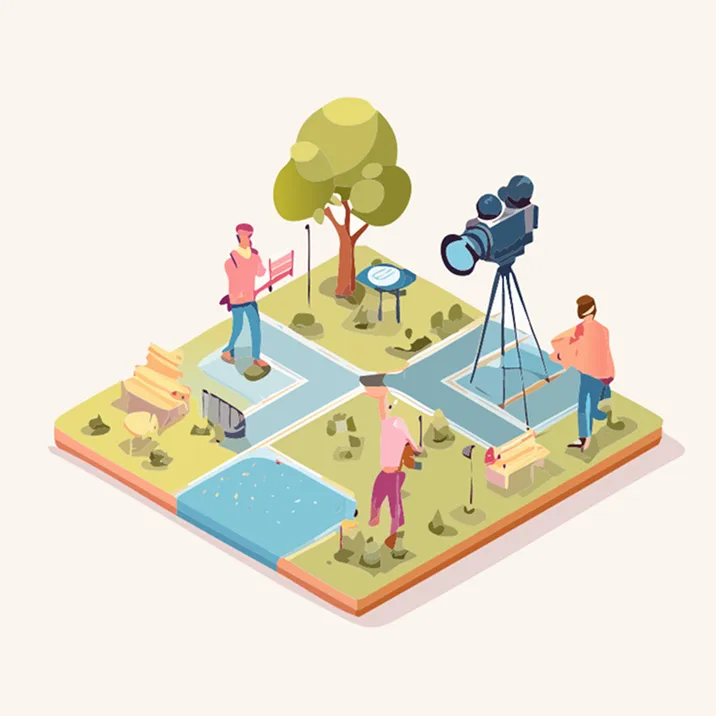 映像のテーマ・内容を決め、スケジューリングの作成を行います。映像制作で大切なリサーチとは、映像を作る上で必要な情報をさまざまな角度から調査し、検証を行うことです。