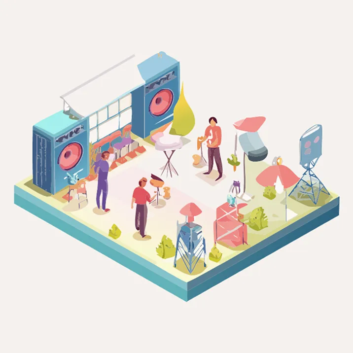 スタジオ収録はディレクターをはじめ、カメラマン・音声・照明・美術など、多くのスタッフが協力して撮影を進めます。番組収録を順調に進めるため、カンペ出しなどもADの重要な役割です。
